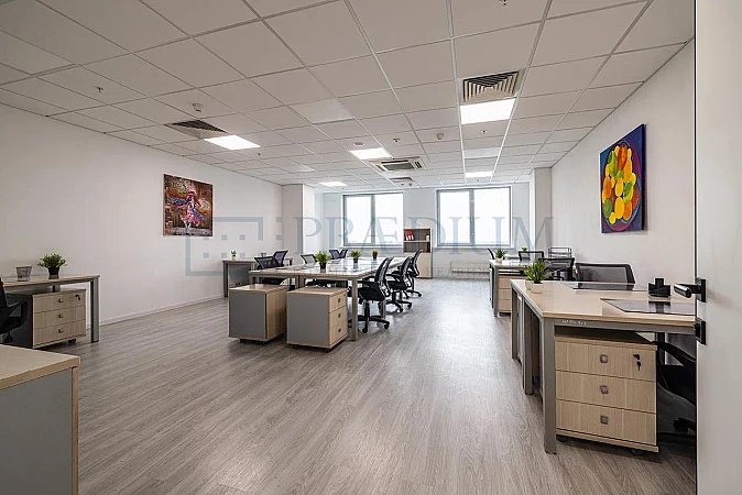 Офис после ремонта: рассчитан на 26 рабочих места, полностью меблированных и готовых к въезду.