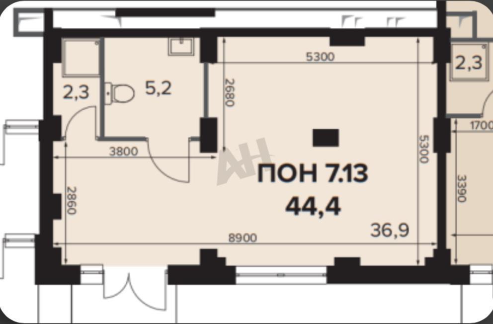 • Площадь - 44,4 м²