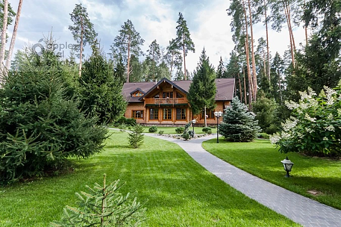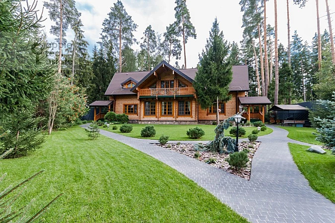 Площадь дома - 376 кв.м. Материал дома - брус. Количество этажей - 2. Спален - 6. Санузлов - 5. Площадь участка - 22 соток. Тип участка: лесной, ландшафт. Есть гараж на 2 а/м, домик для персонала 107 м2 (кухня, спортзал, 2 спальни, с/у с душевой, с/у), беседка с барбекю.