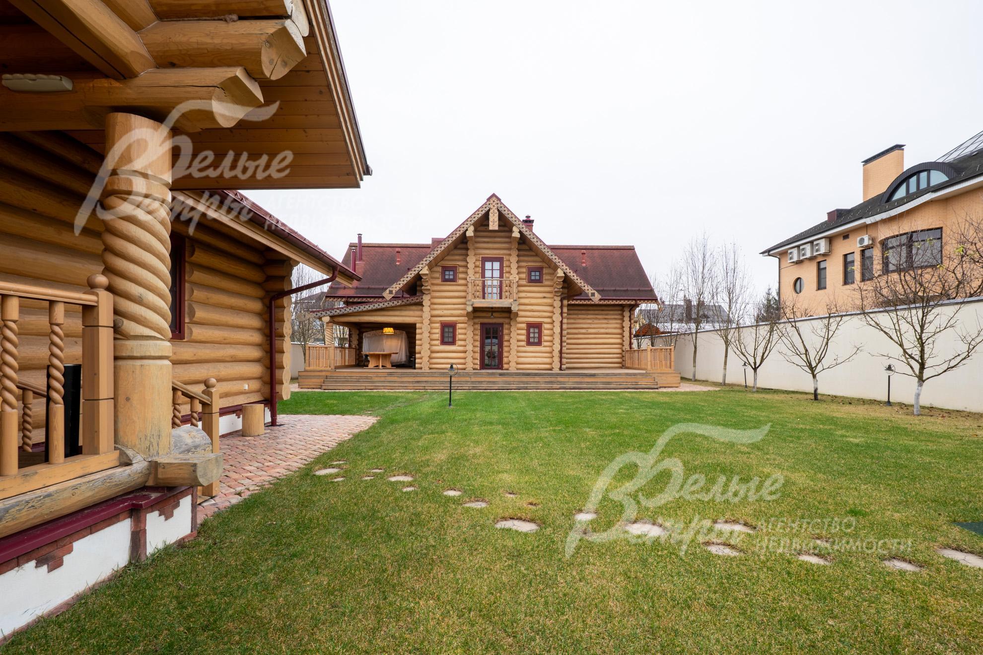Дом-сказка! Выполненный в старорусской стилистике, из бревна вологодской сосны ручной рубки и шлифовки. При этом дом отвечает всем современным требованиям! При строительстве и отделке применялись лучшие и новейшие материалы и технологии. Все спальни с собственными санузлами, гардеробными и балконами. Применена эффективная звукоизоляция. Практически все элементы дома делались по индивидуальным проектам, декор ручной работы и художественная роспись, элитные импортные отделочные материалы.В доме настоящая русская печь с большой лежанкой. Отдельно стоящая баня и дровяная чан-бочка. Уличная кухня под навесом в старорусском стиле с разными способами приготовления блюд. Аутентичные беседка и колодец.Участок находится в обжитом коттеджном посёлке в 300 м от леса и каскада прудов.