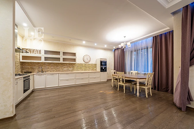В доме выполнен современный ремонт из качественных материалов. Большая кухня-гостиная оснащена встроенным кухонным гарнитуром по единой столешницей с немецкой встраиваемой техникой SIEMENS: газовая поверхность, духовой шкаф, мощная вытяжка, СВЧ печь, кофе-машина, посудомоечная машина. Безусловно комфорта добавят измельчитель под раковиной и фильтр для питьевой воды.Деревянные фасады под эмалью, фурнитура фирмы Blum. Центром притяжения всей семьи несомненно станет дровяной камин в гостиной. Большая оборудованная гардеробная справится с хранением как сезонных вещей, так ежедневной одежды. Гостевой санузел оборудован в том числе и душевой. Отапливаемый гараж на один автомобиль позволит садиться в сухой и теплый авто в любую непогоду.