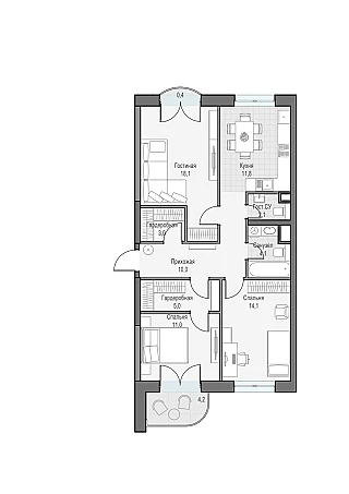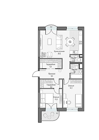 - с просторными кухнями-гостиными,
