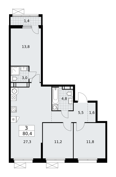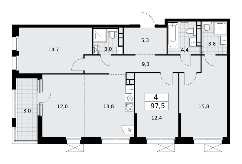 Продаются 4-к апартаменты площадью 99.26 кв.м. на 6-м этаже 20 этажного дома в ЭВОПАРК Сокольники от ГК ОСНОВА.