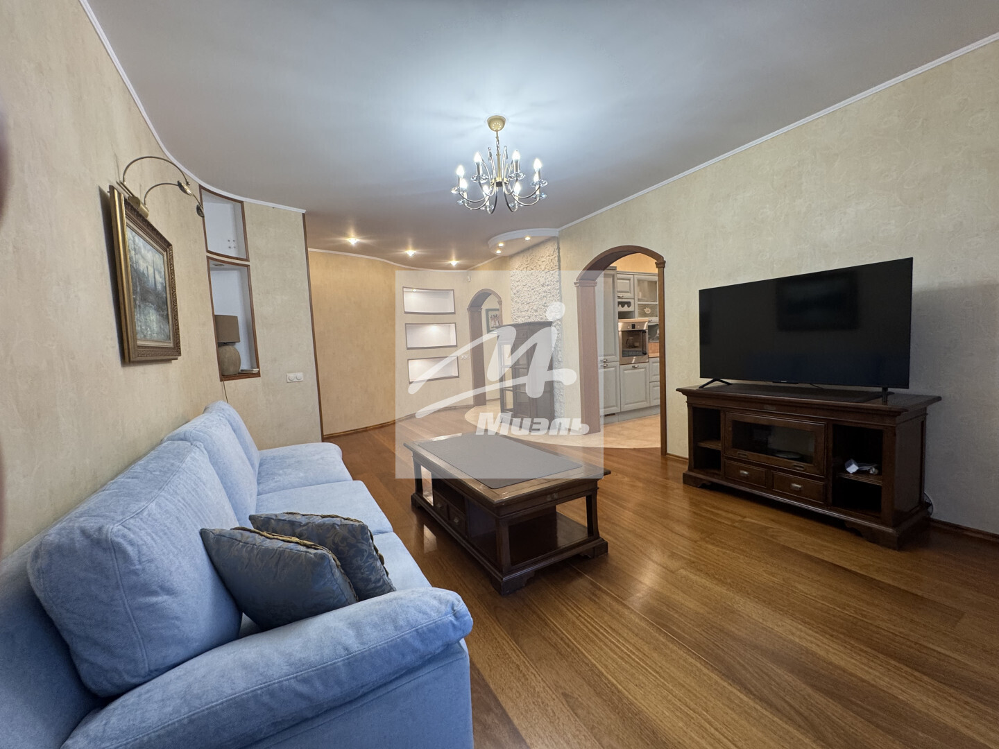Квартира полностью меблирована гарнитурной мебелью пр-во Италия. Красивая, встроенная кухня оснащена бытовой техникой от ведущих производителей: посудомоечная машина, микроволновая печь, пылесос, чайник, посуда. Роскошная мастер-спальня со своей ванной комнатой, отдельная и вместительная гардеробная комната. В просторной гостиной установлен удобный диван, новый телевизор системы Smart TV. Еще одна комната, обустроена под кабинет с качественной мебелью. Имеется теплая, застеклённая лоджия, отдельный гостевой сан-узел, в котором замечательно вписалась стиральная машина автомат. В большом холле оборудован встроенный, зеркальный шкаф-купе, есть видеодомофон.