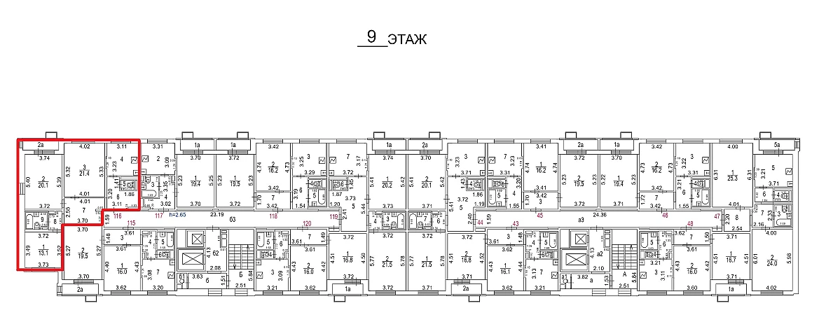 Высота потолков: 2,63 - 2,63 м
