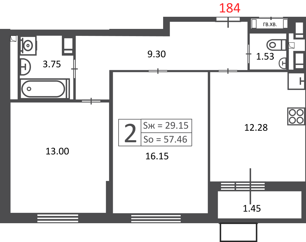 Квартира. Договор долевого участия, 2-комн., 57,46 м², ВАО, (м.Измайловская) | ВАО, 3-я Прядильная ул., земельный участок 4, этаж 2, кв. 184 | Метро: Измайловская (пешком 18 мин., транспортом 18 мин., расстояние 1.2 км)