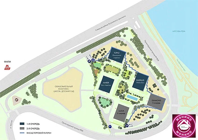 Жилой комплекс — это пять 45-46-этажных монолитно-каркасных домов в Дорогомилово на западе Москвы. Строительство башен развернулось на участке, где раньше располагался завод "Филикровля".