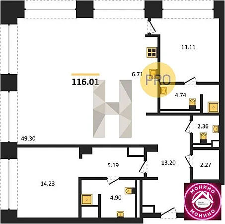 Квартира: 2 к 116,01 кв.м., 9 этаж в комплексе FORUM, 1 очередь, корп.1, сдача: 1кв. , этажей: 13, адрес Садовая-Сухаревская ул., д. 14 стр. 1, Застройщик: MR PRIVATE.