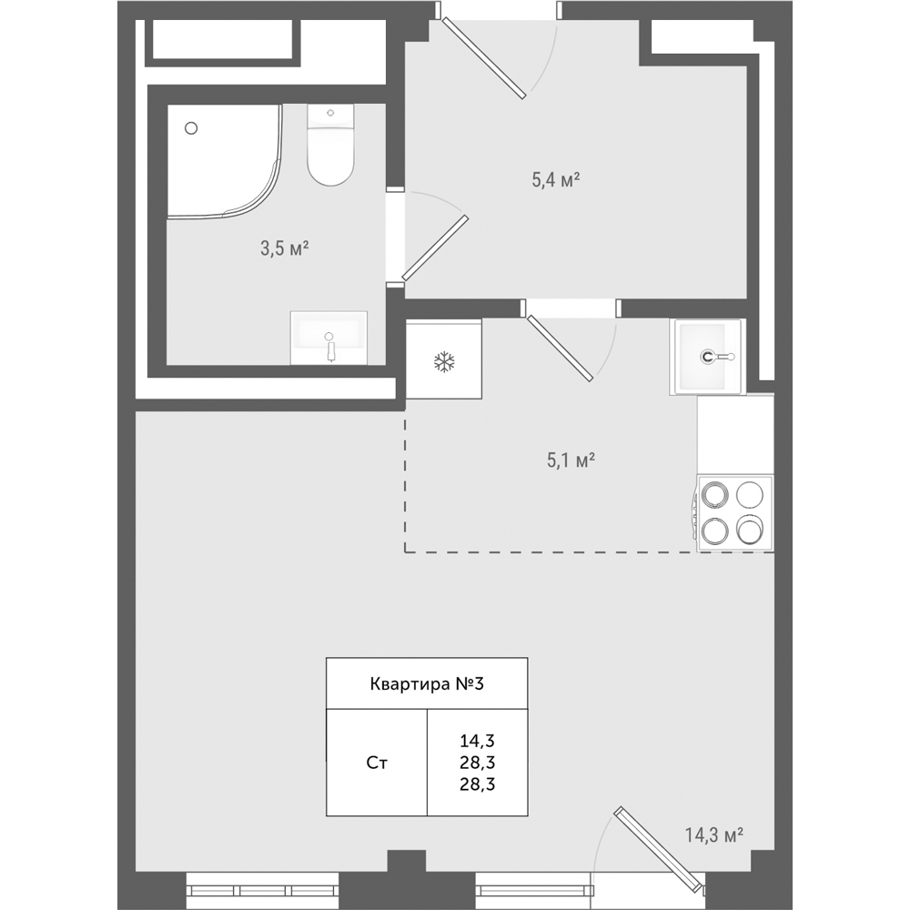 Продается студия площадью 28.3 кв.м. на 1-м этаже