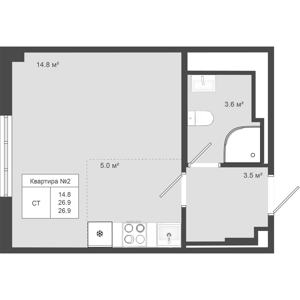 Продается студия площадью 26.9 кв.м. на 1-м этаже