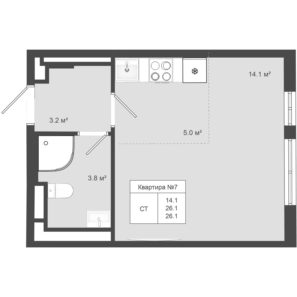 Продается студия площадью 26.1 кв.м. на 1-м этаже