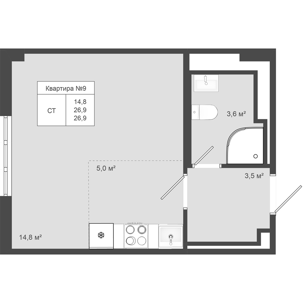 Продается студия площадью 26.9 кв.м. на 2-м этаже