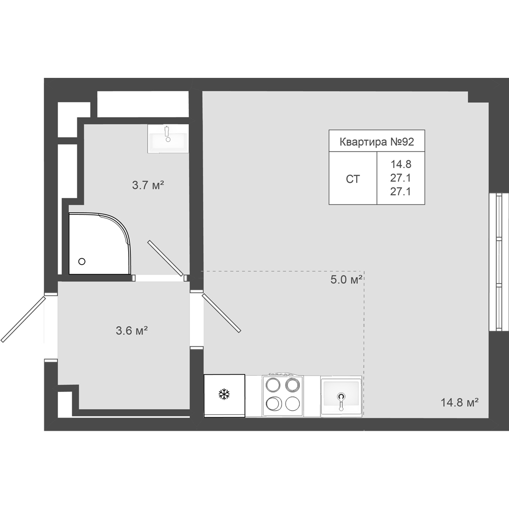 Продается студия площадью 27.1 кв.м. на 1-м этаже