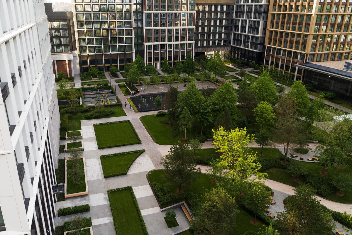 Проект входит в топ-10 самых высоких новостроек Москвы – верхние этажи башен возносятся над землей не менее чем на 150 м. Внешний облик каждой из них разработан по индивидуальному проекту в необычном стиле, сочетающим в себе элементы минимализма, конструктивизма и хай-тек.