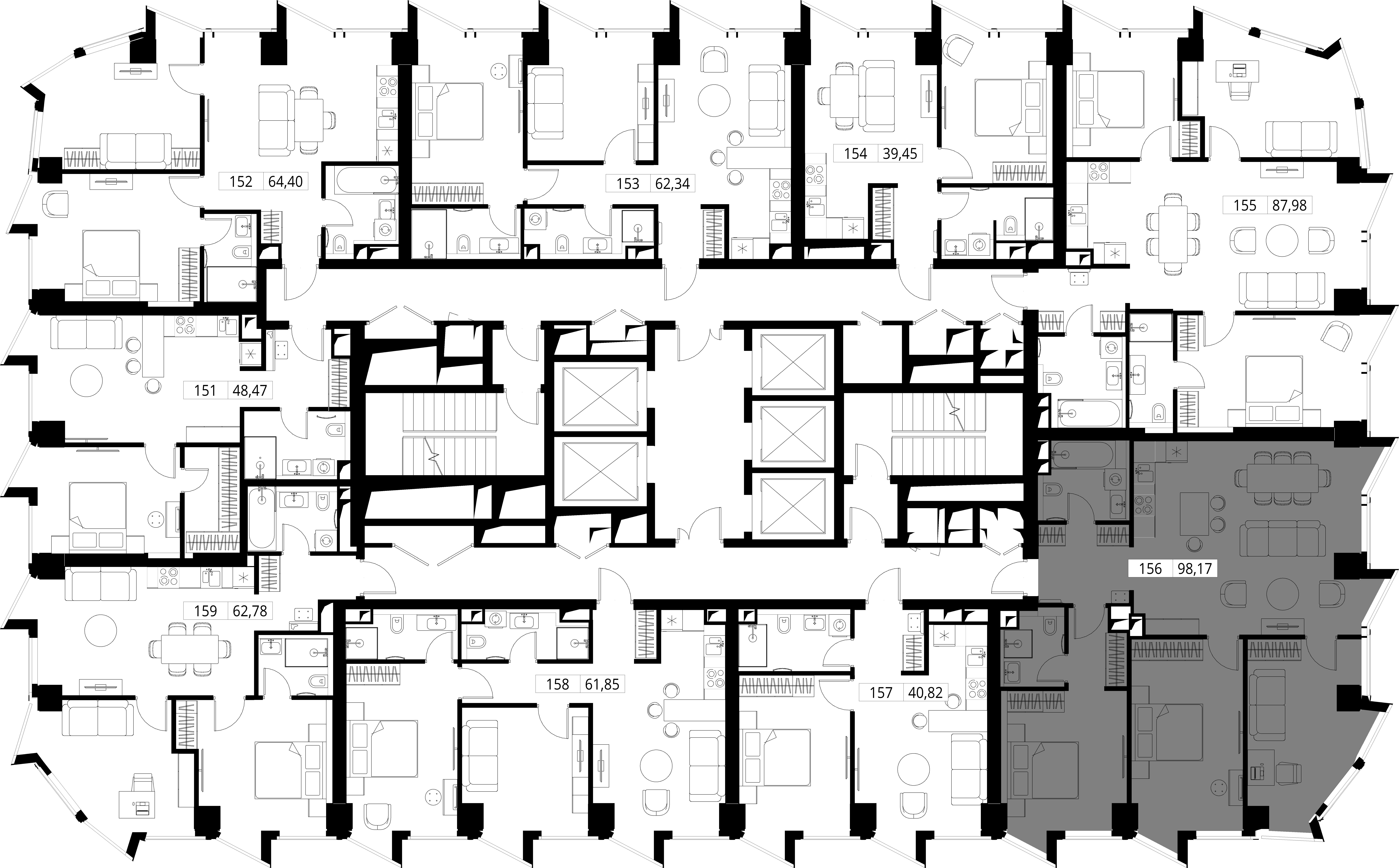 Продаётся 3-к квартира общей площадью 98.17 кв. м с предчистовой отделкой на 17-м этаже премиального небоскреба Famous.