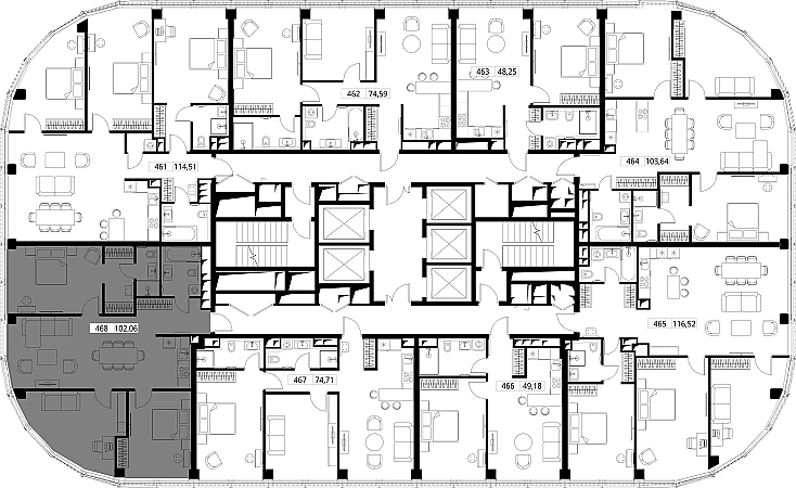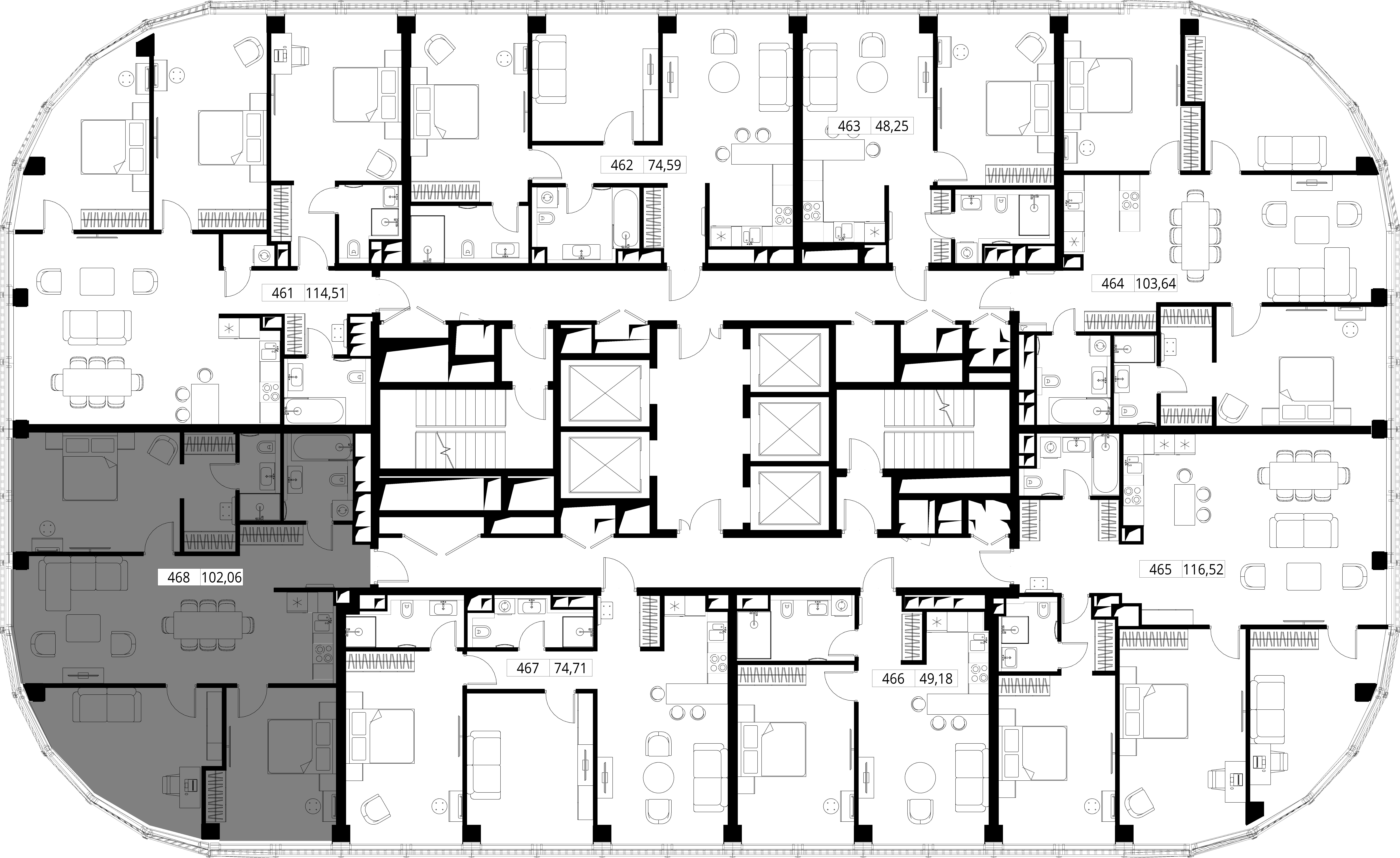 Продаётся 3-к квартира общей площадью 103 кв. м с предчистовой отделкой на 53-м этаже премиального небоскреба Famous.
