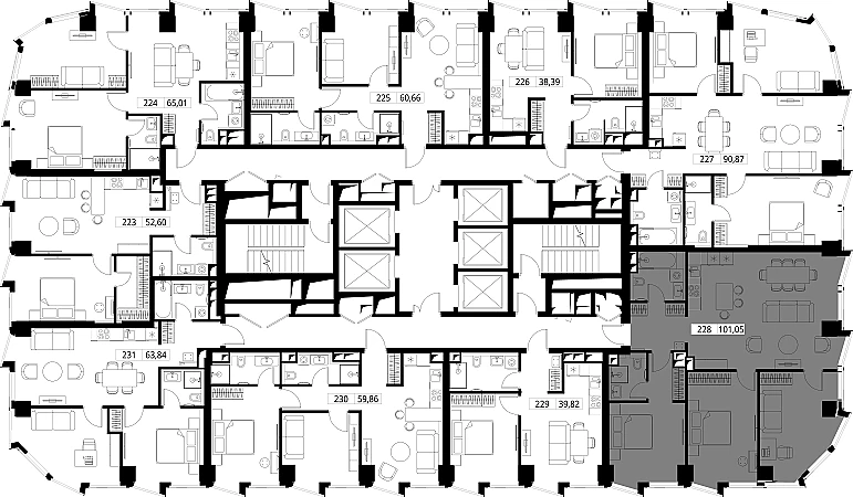 Продаётся 3-к квартира общей площадью 101.05 кв. м с предчистовой отделкой на 25-м этаже премиального небоскреба Famous.