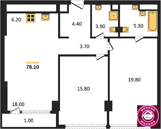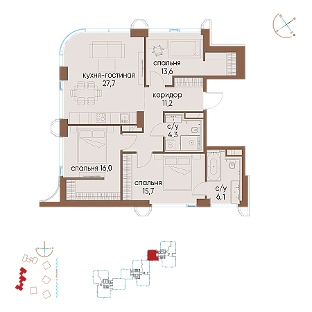 Квартира: 2 к 78,00 кв.м., 13 этаж в комплексе River Park Towers Кутузовский, 1 очередь, корп.2. Emerald, сдача: 3кв. , этажей: 46, адрес Кутузовский прд., д. 16, Застройщик: AEON Development.