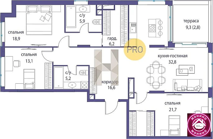 Квартира: 3 к 123,20 кв.м., 11 этаж в комплексе Остров, 4 очередь, корп.7, сдача: 1кв. , этажей: 16, адрес Нижние Мневники ул., д. 7, Застройщик: Донстрой.