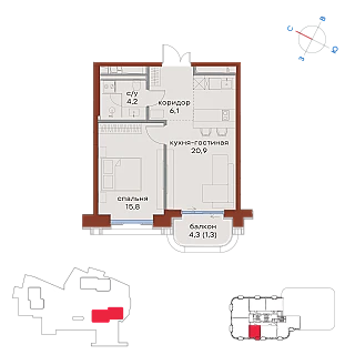 Квартира: 1 к 46,80 кв.м., 9 этаж в комплексе FORUM, 1 очередь, корп.1, сдача: 1кв. , этажей: 13, адрес Садовая-Сухаревская ул., д. 14 стр. 1, Застройщик: MR PRIVATE.