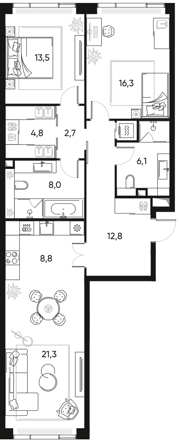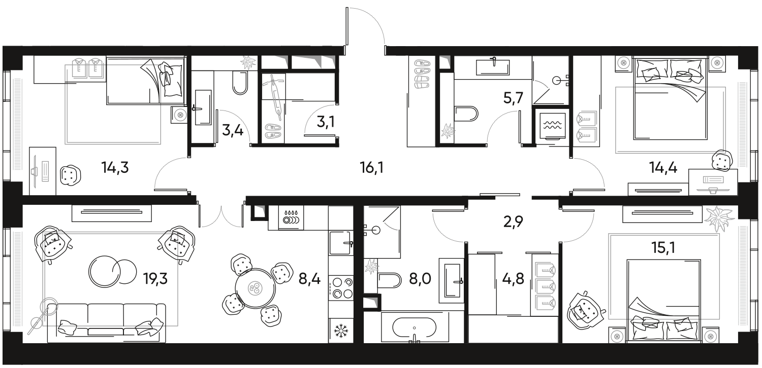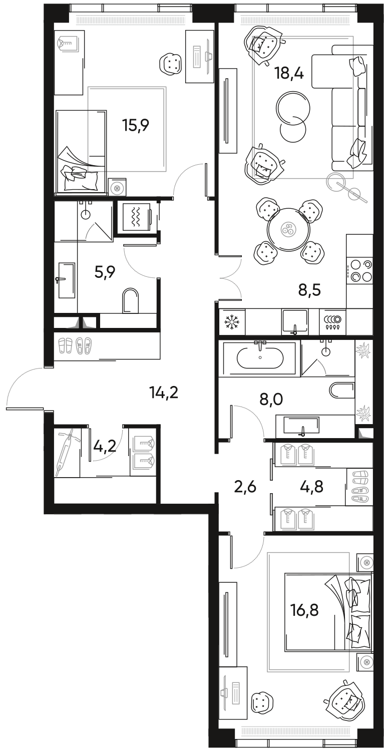 Купить 3к квартиру 144 м² в ЖК Триколор