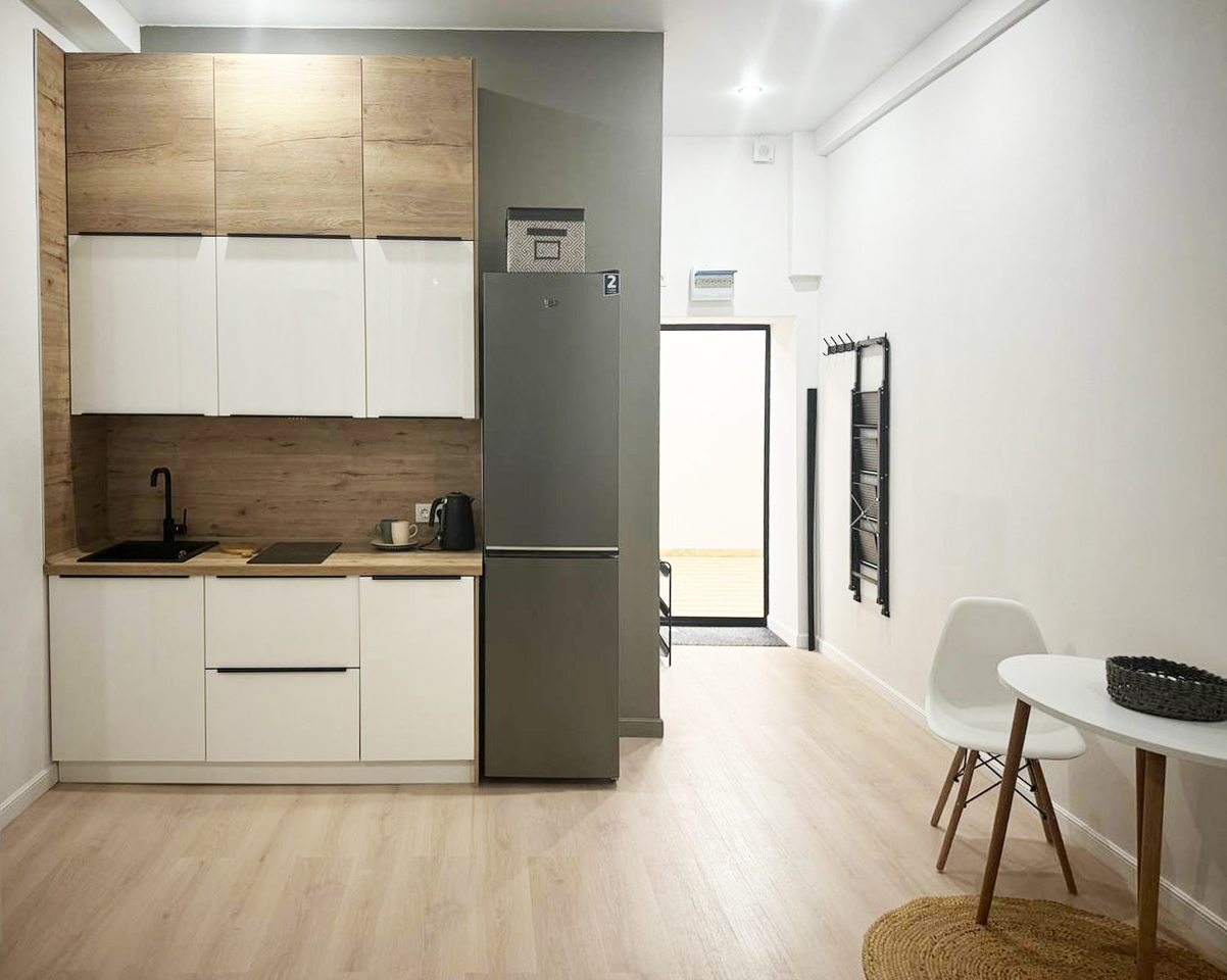 Кирпичное здание после полной реновации: воссоздана атмосфера старинной усадьбы. Территория огорожена, есть красивый парк с вечнозелеными деревьями, зоны отдыха, детская площадка и парковка. Внутри — ресепшен, лобби, лаундж-зона.