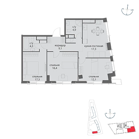 Продаётся 2-к квартира общей площадью 62.95 кв. м с предчистовой отделкой на 37-м этаже премиального небоскреба Famous.