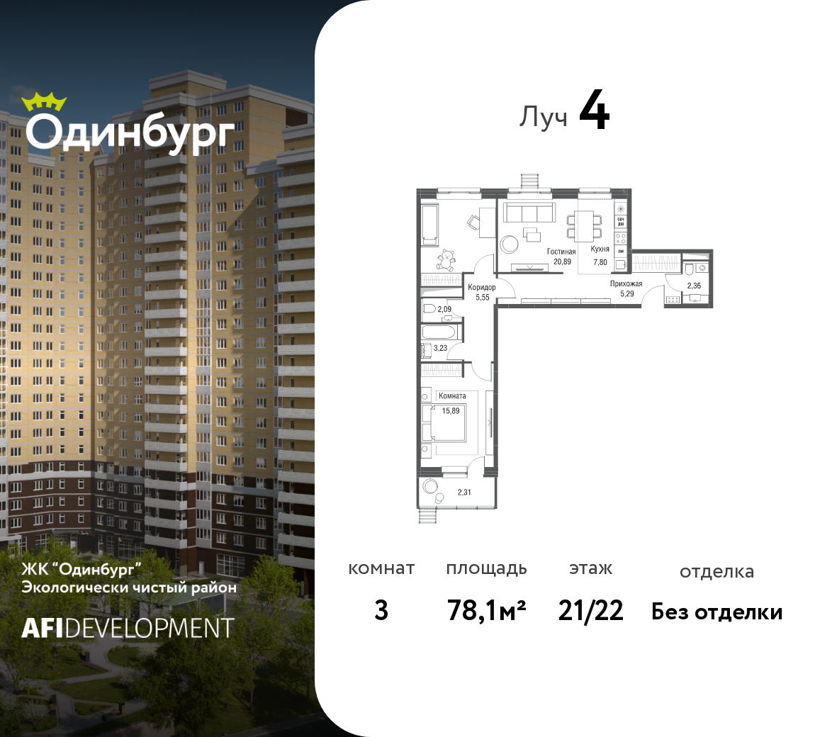 Предлагаем вашему вниманию уютную 3-комнатную квартиру общей площадью 78,1 кв.м на 21 этаже в новой очереди строительства ЖК «Одинбург». Этот обновленный проект от компании AFI Development включает в себя актуальные архитектурные решения и функциональные планировки. Для всех действует предложение от застройщика “Назови свою скидку”, подробности акции уточняйте у менеджеров отдела продаж.