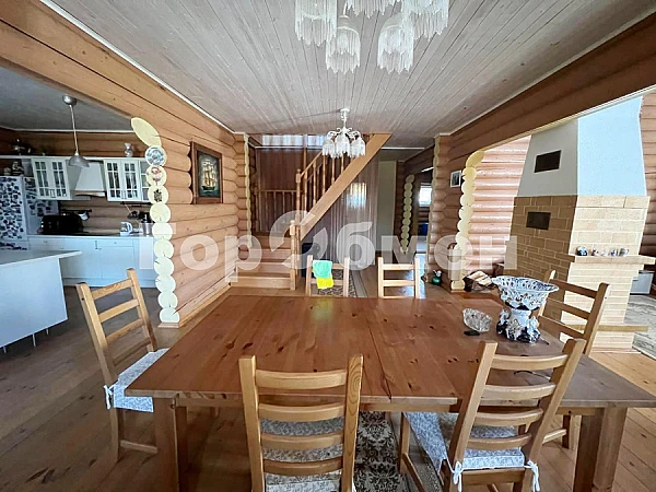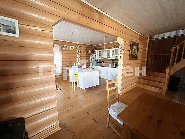 Продается загородный дом с богатым земельным участков. Дом выполнен из бревна. Недавно обработан и покрыт маслом. На входе в дом просторная терраса.