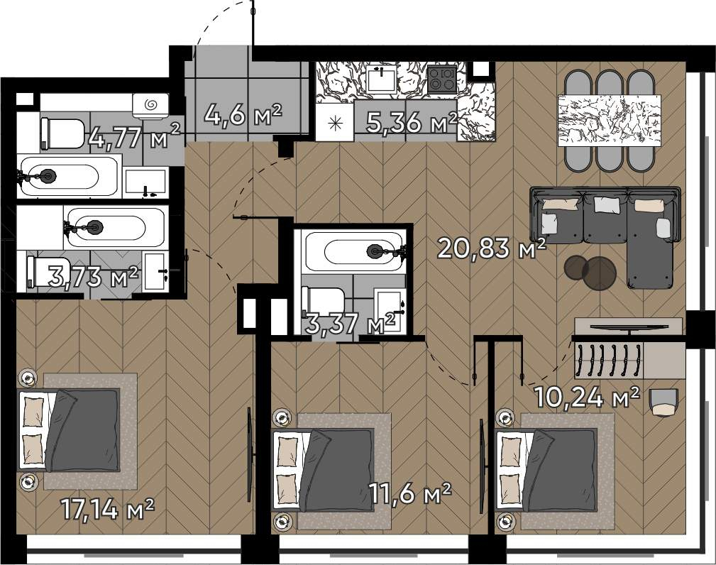 Квартиры с угловым остеклением - максимальный свет и панорамные виды на природу и город, создающие атмосферу свободы и комфорта.
