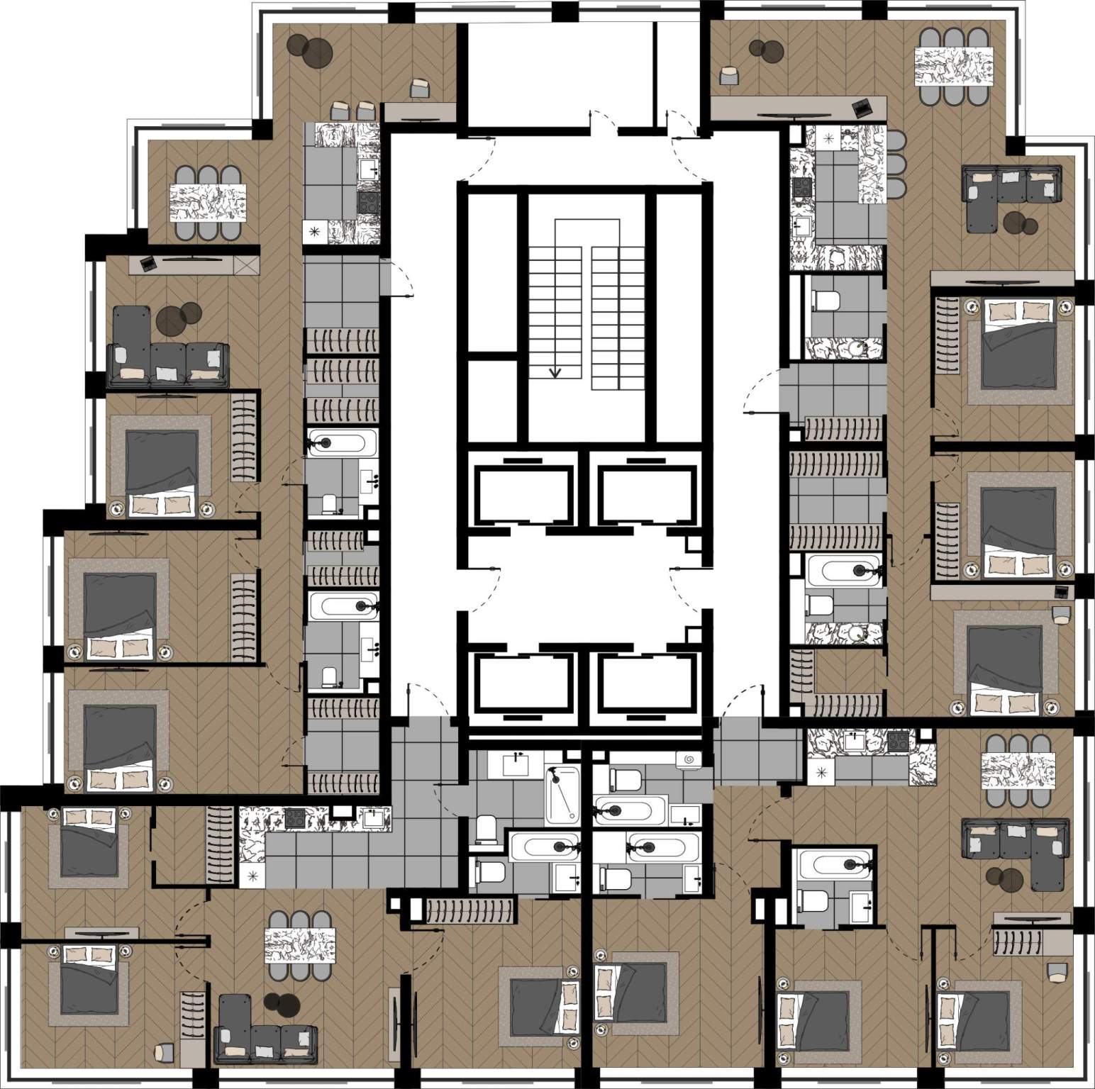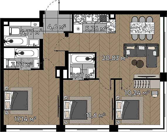 Квартиры с просторными террасами - выход на свежий воздух прямо из дома, гармония природы и городской роскоши.