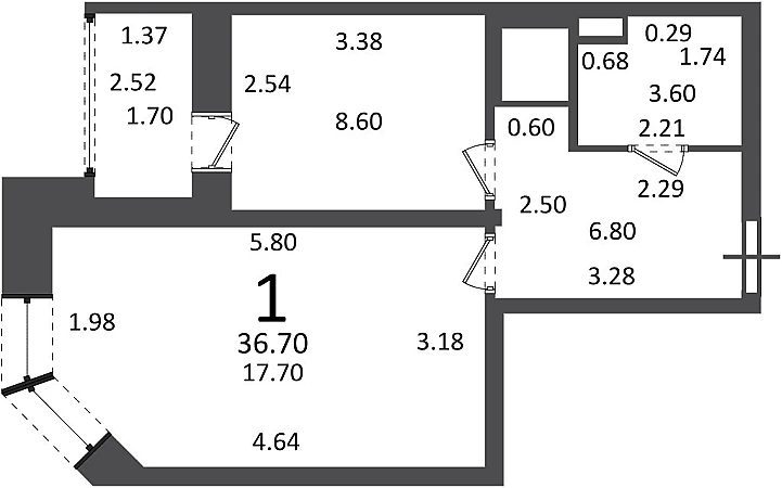 Квартира, 1-комн., 36,7 м², ТАО | ТАО, г. Троицк, ул. Текстильщиков, д. 3, корп. 2, этаж 7, кв. 61