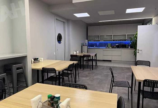 Помещение сдаётся с отделкой и смешанной планировкой, без мебели. Высота потолков варьируется от 3 до 5 метров. Вход в помещение осуществляется из здания, а доступ — по пропускам. В числе дополнительных удобств предусмотрены кухня, санузел в блоке и мокрая точка.
