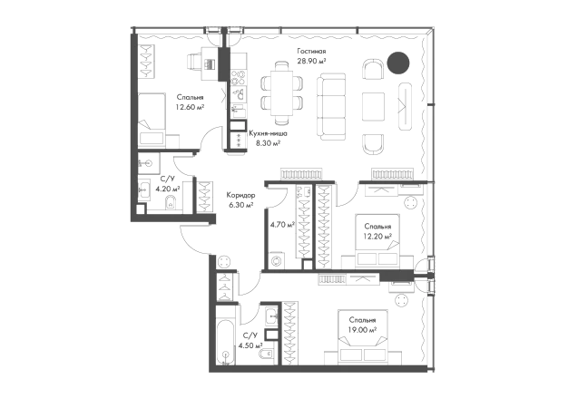 Купить 3к квартиру 100 м² в апарт-комплексе SLAVA (Слава)
