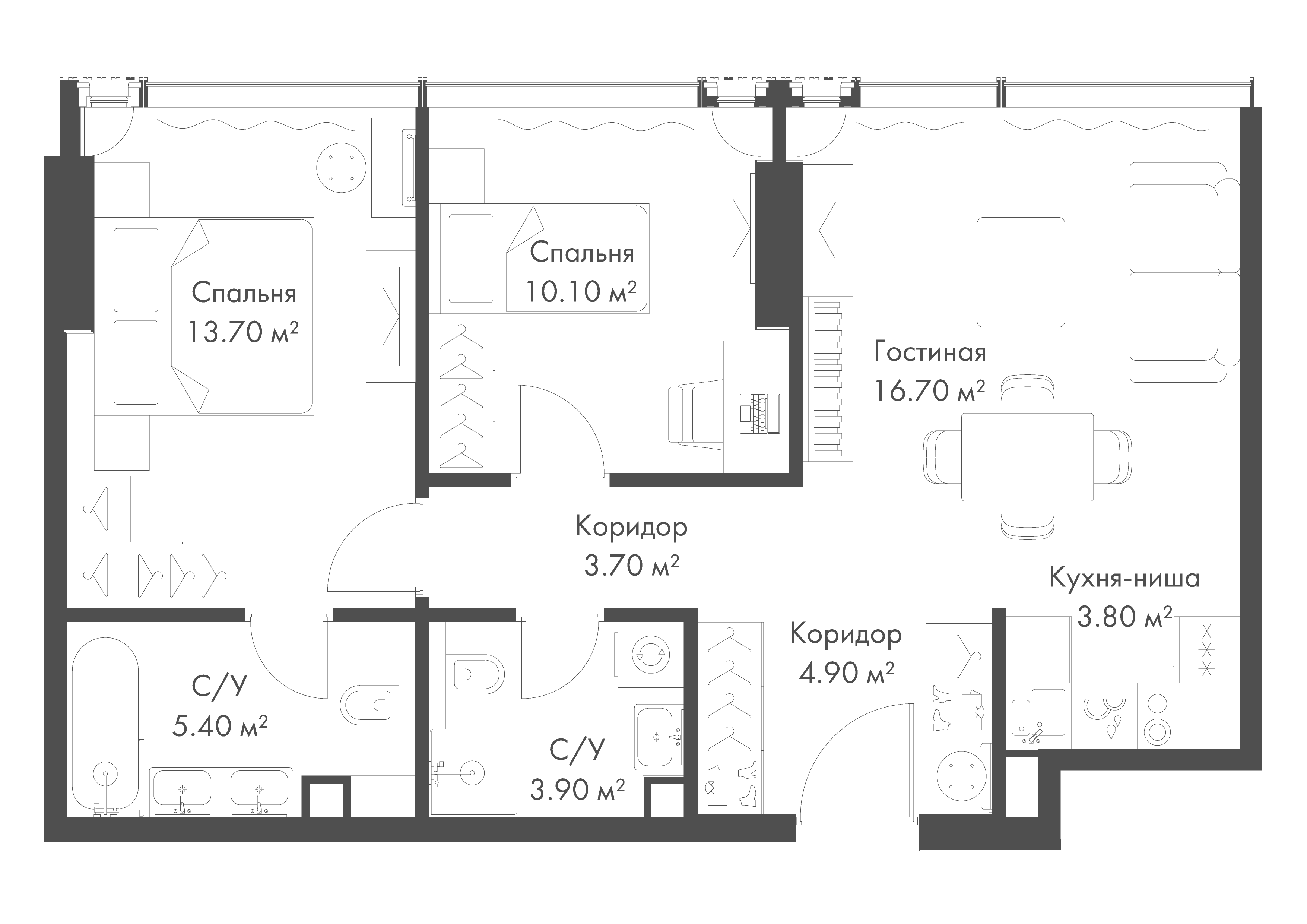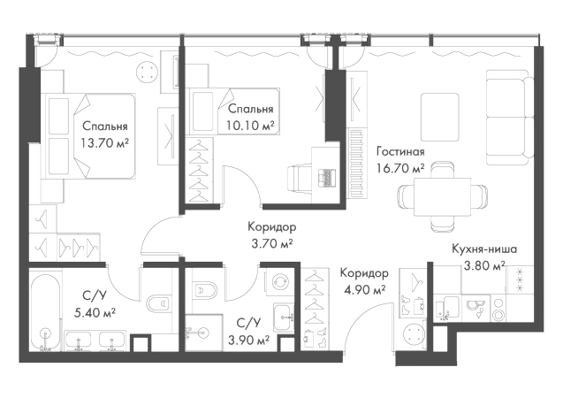 Купить 2к квартиру 62 м² в апарт-комплексе SLAVA (Слава)