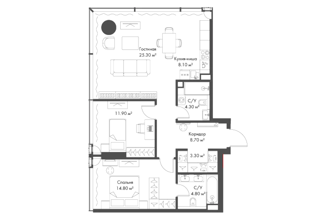 Купить 2к квартиру 81 м² в апарт-комплексе SLAVA (Слава)
