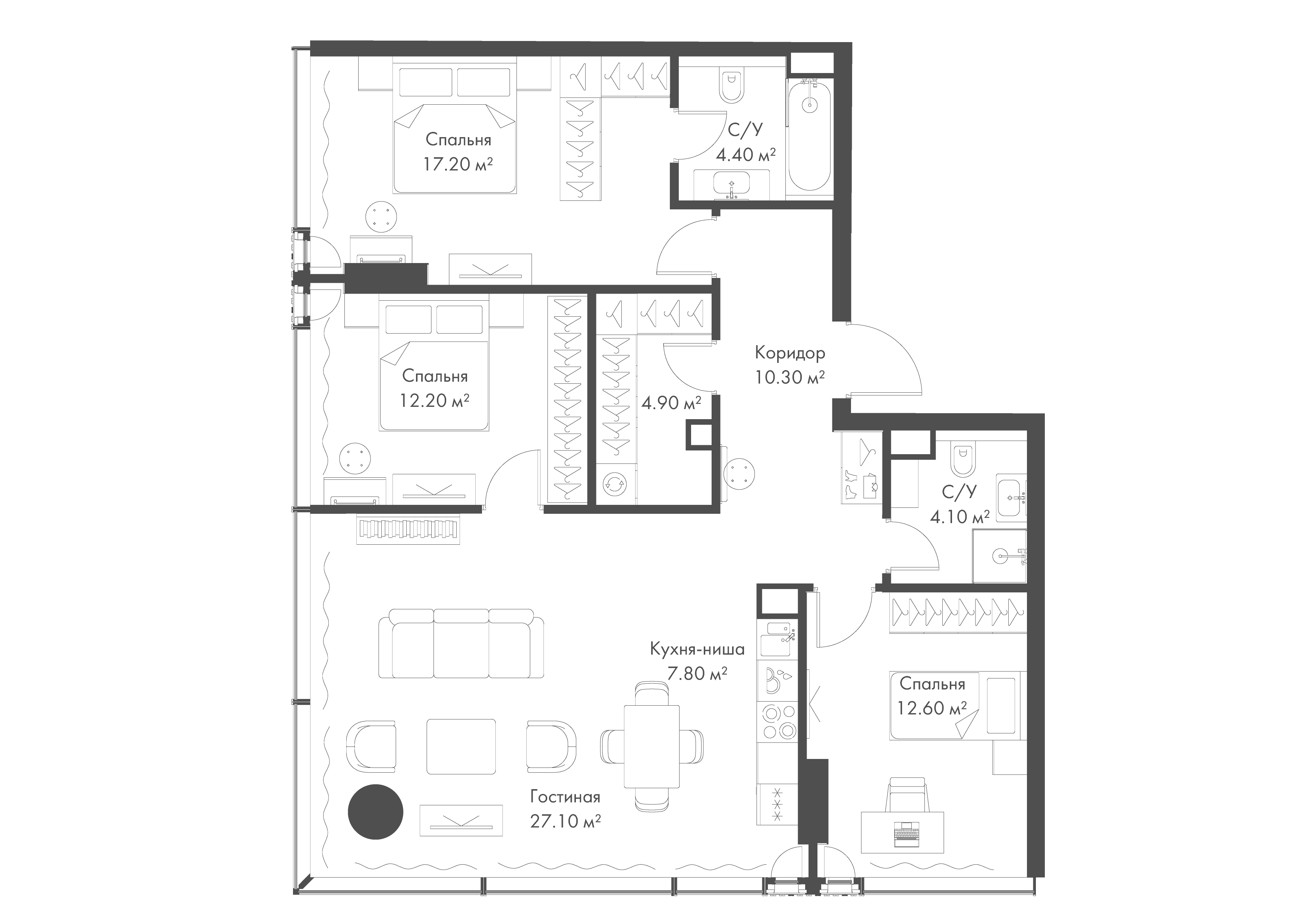 Купить 3к квартиру 100 м² в апарт-комплексе SLAVA (Слава)