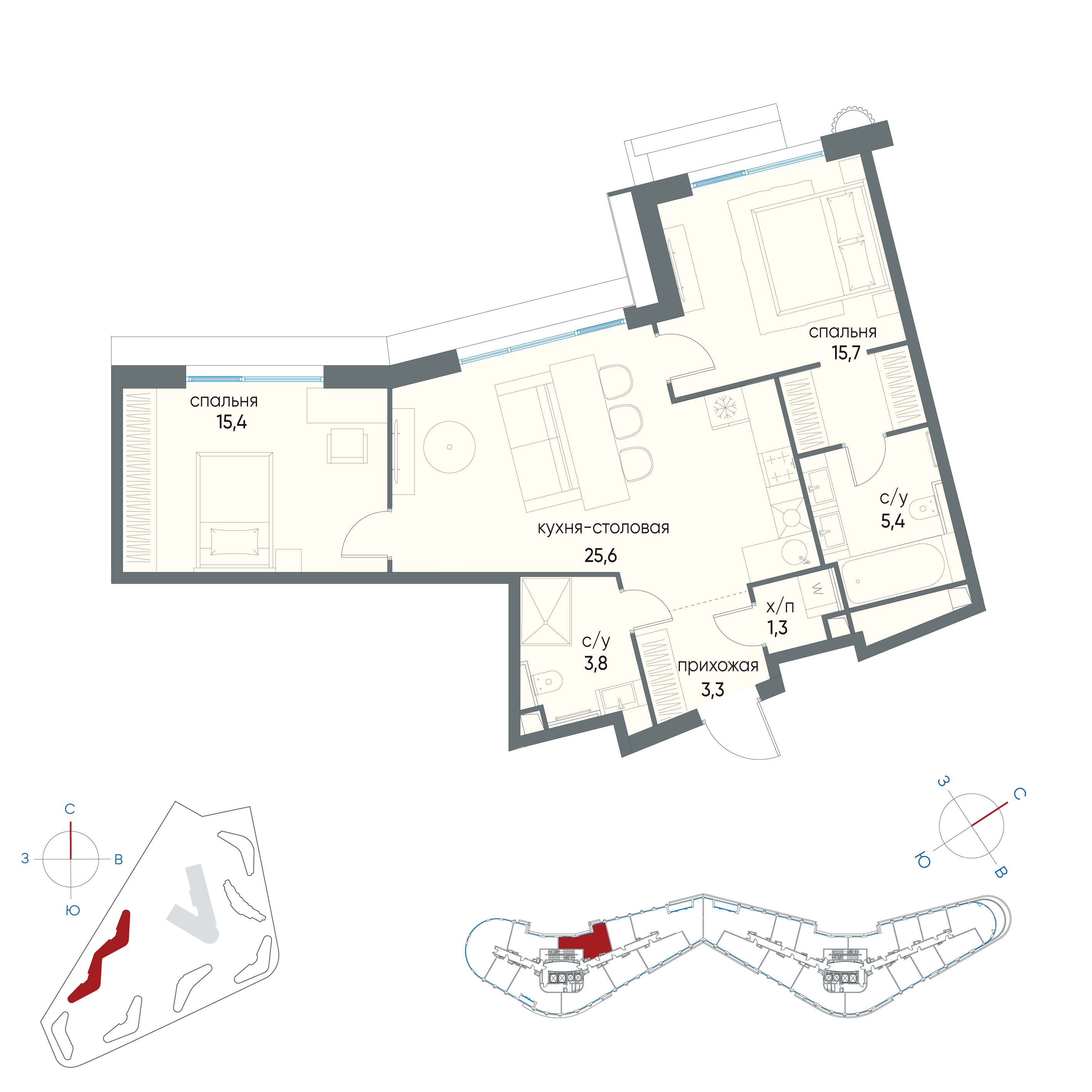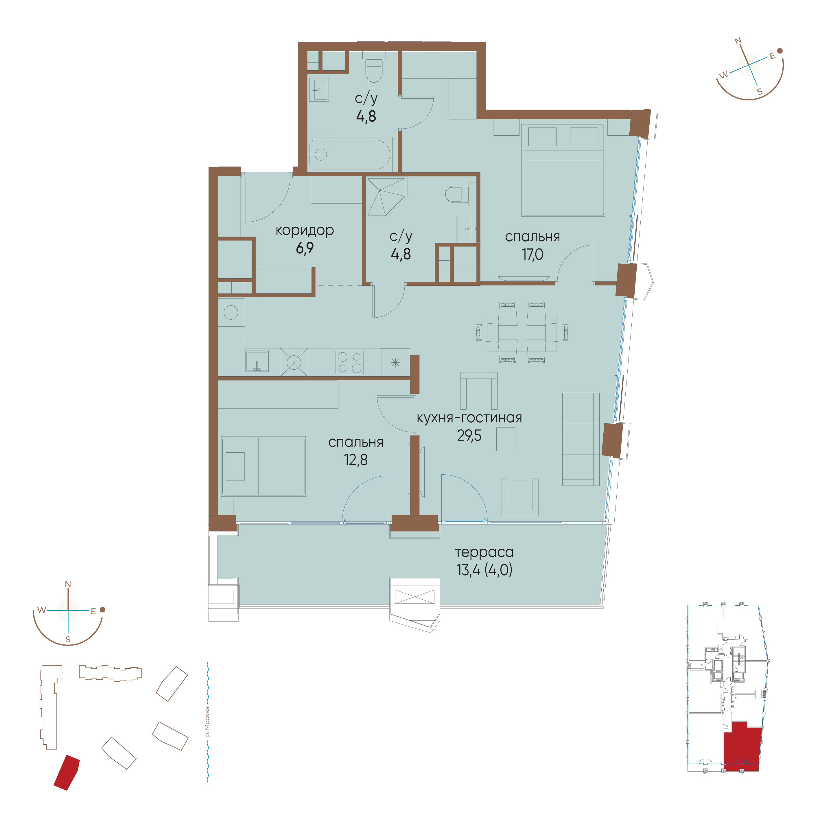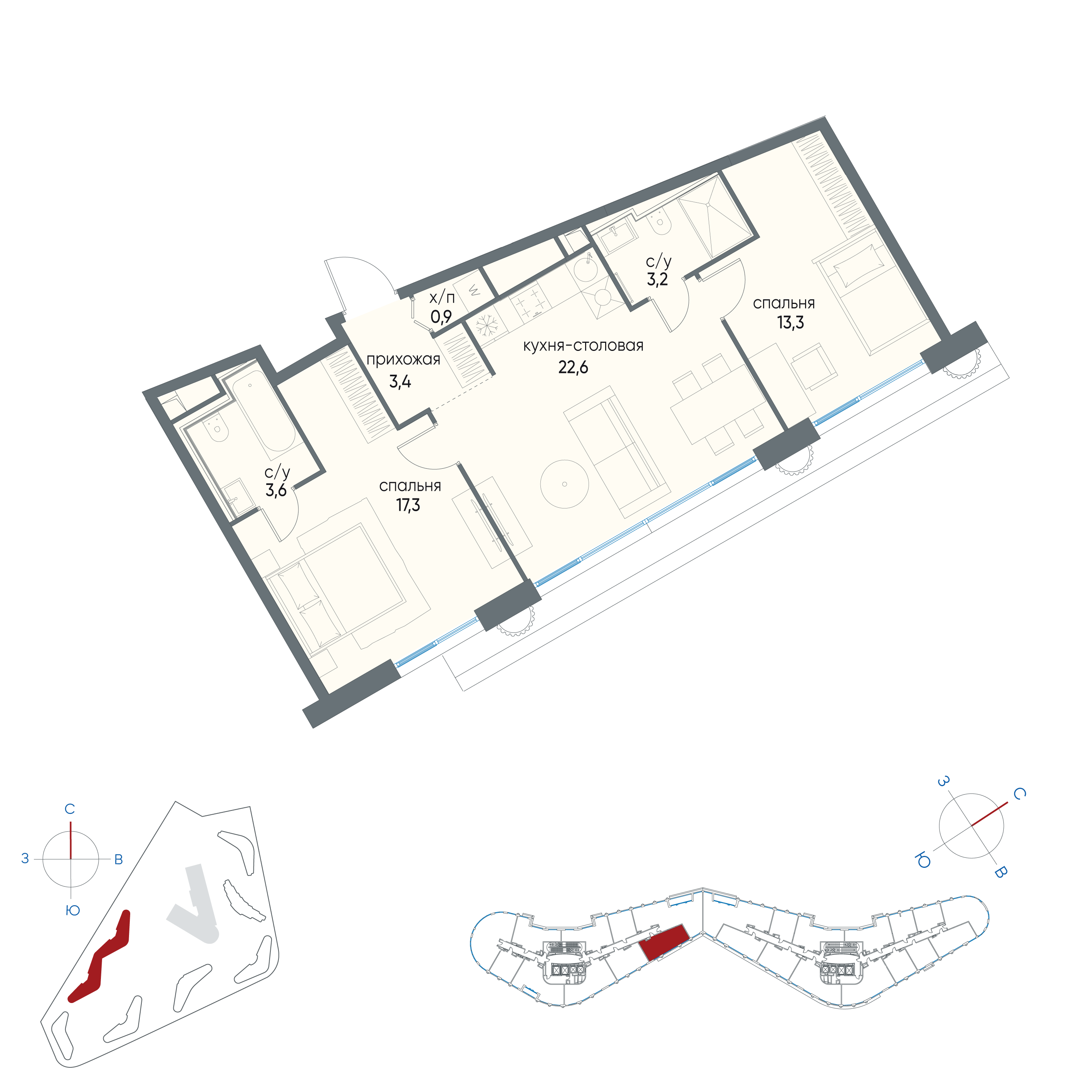 Купить 2к квартиру 63 м² в апарт-комплексе SLAVA (Слава)
