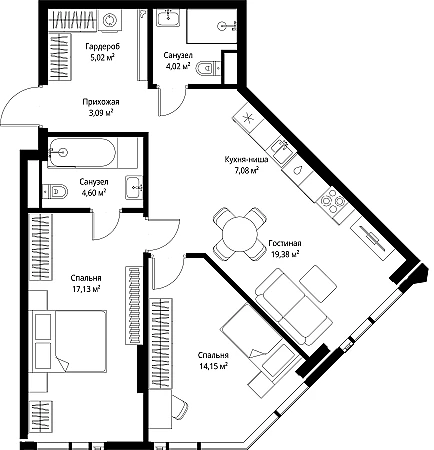 Купить 2к квартиру 74 м² в ЖК JOIS (Джойс)