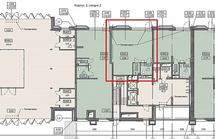 этаже, рядом с центральным входом в главное лобби ЖК, на первой линии