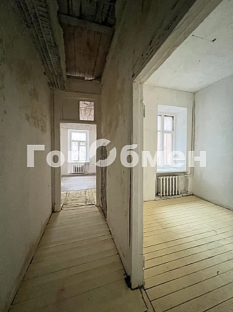Окна в квартире выходят на три стороны (все во двор), высокие потолки, смежно-изолированные комнаты, есть выход на черный ход. В квартире нет несущих стен. Перекрытия смешанные. В ванной газовая колонка. Квартира требует ремонта.