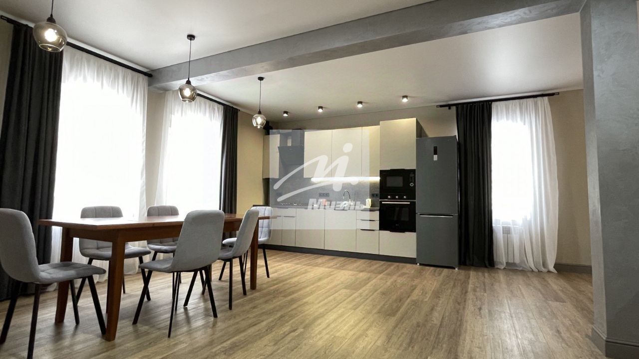 Коттедж оборудован мебелью и бытовой техникой. Планировка в доме очень удобная: на первом этаже расположена: большая прихожая, гостиная, 3 спальни, 2 санузла; на втором этаже - 3 спальни, 3 санузла, в цокольном этаже – кухня, 2 спальни, комната, санузел.
