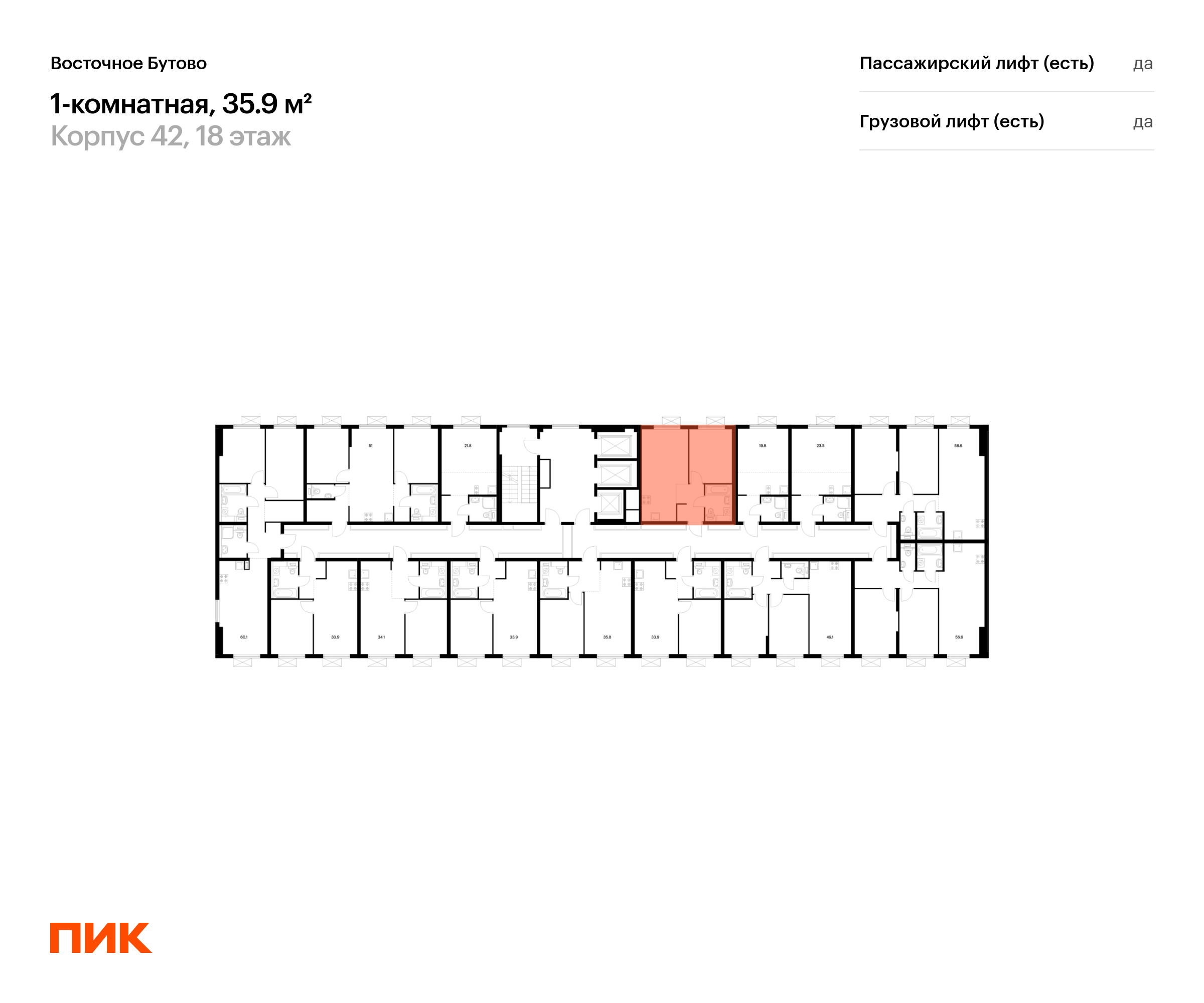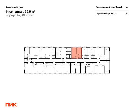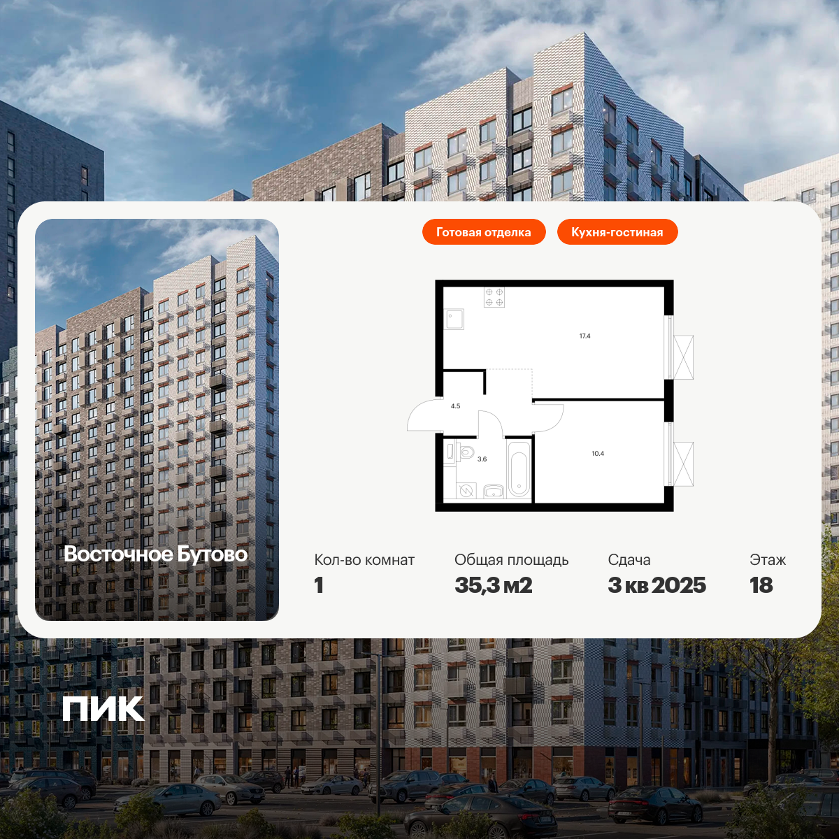 Продаётся 1-комн.квартира площадью 35.30 кв.м на 18 этаже 25 этажного дома (Корпус 42, секция 4) проекта ПИК Восточное Бутово. Светлый просторный подъезд на уровне земли, функциональная планировка, большие окна, с отделкой.
