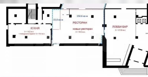Возможно увеличение площади за счет аренды лобби бара -147,9 кв.м.