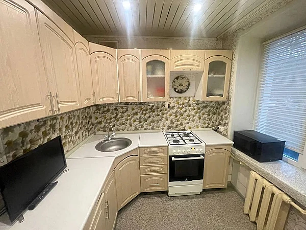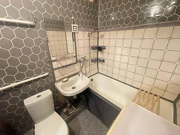 Общая площадь квартиры 43,4 кв.м., жилая - 29 кв.м., комнаты смежные: 17 кв.м. с выходом на балкон и 12 кв.м. Кухня 6,5 кв.м., санузел совместный.