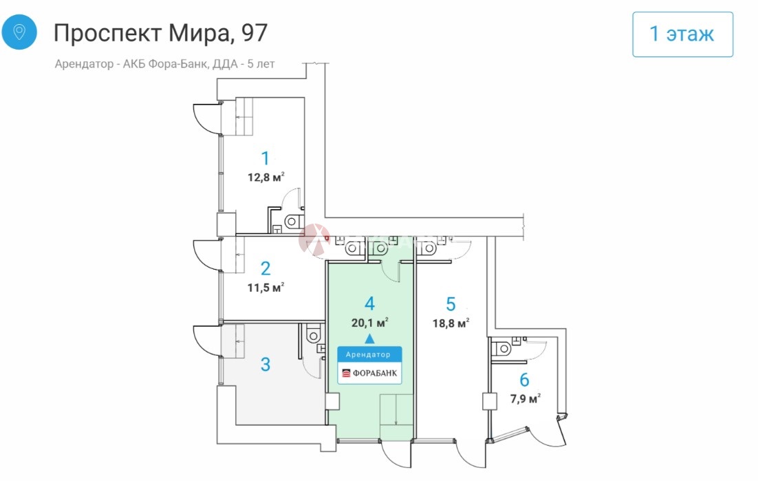 Номер лота на нашем сайте: 44974. Арендатор - Банк Фора-банк ДДА 5 лет от 2025 года МАП 490 000 руб Форматное торговое помещение площадью 20,1 кв.м , в зоне высокого пешеходного трафика. Первая линия домов. 2 мин. ходьбы от ст.м. Алексеевская. Помещение находится на 1-м этаже жилого дома. Планировка зальная, потолки высотой 4 метра, высокий рекламный потенциал, удобное расположение для вывесок. Помещение имеет полное коммунальное и инженерное обеспечение, не требует капитальных вложений.