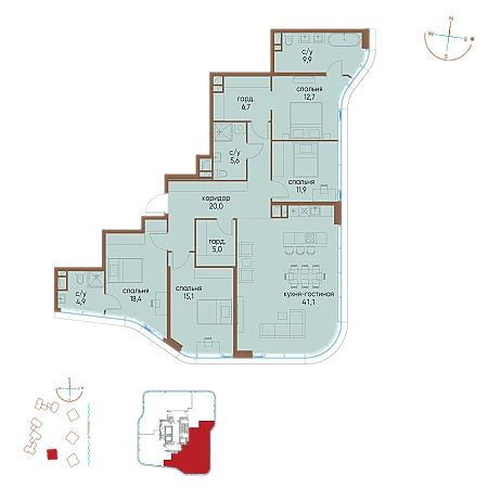 В стоимость входят 2 машиноместа и кладовка (находятся на -1 этаже, рядом с лифтом).