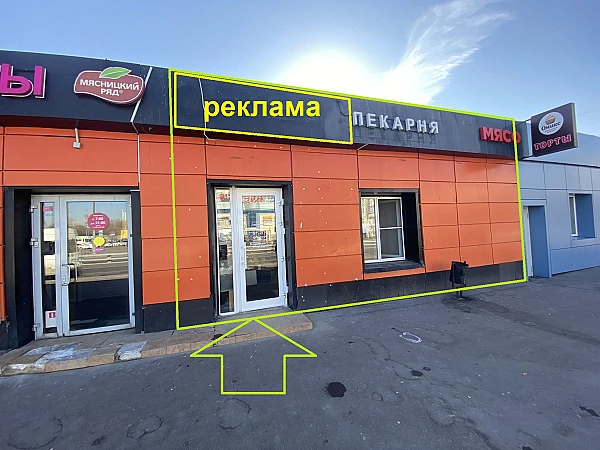 Помещение рядом со станцией метро Тушинская. Прямо напротив выхода из метро. Крупный пересадочный узел, конечные остановки автобусов. Железнодорожная станция. Интенсивный пешеходный трафик.