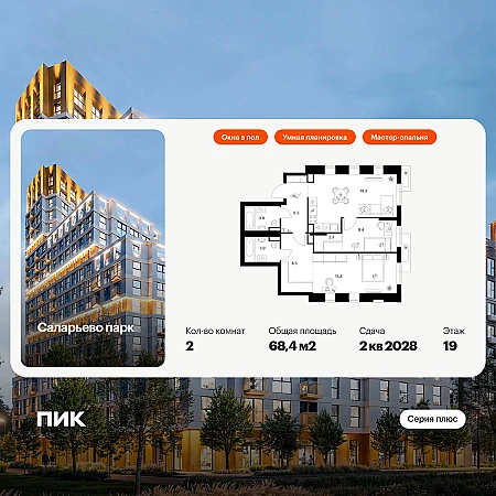 Продаются 3-к апартаменты площадью 73.0 кв.м. на 8-м этаже 29 этажного дома в "NAMETKIN TOWER" от ГК ОСНОВА.