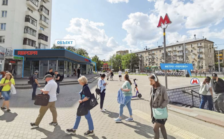 Помещение рядом со станцией метро Тушинская. Прямо напротив выхода из метро. Крупный пересадочный узел, конечные остановки автобусов. Железнодорожная станция. Интенсивный пешеходный трафик.